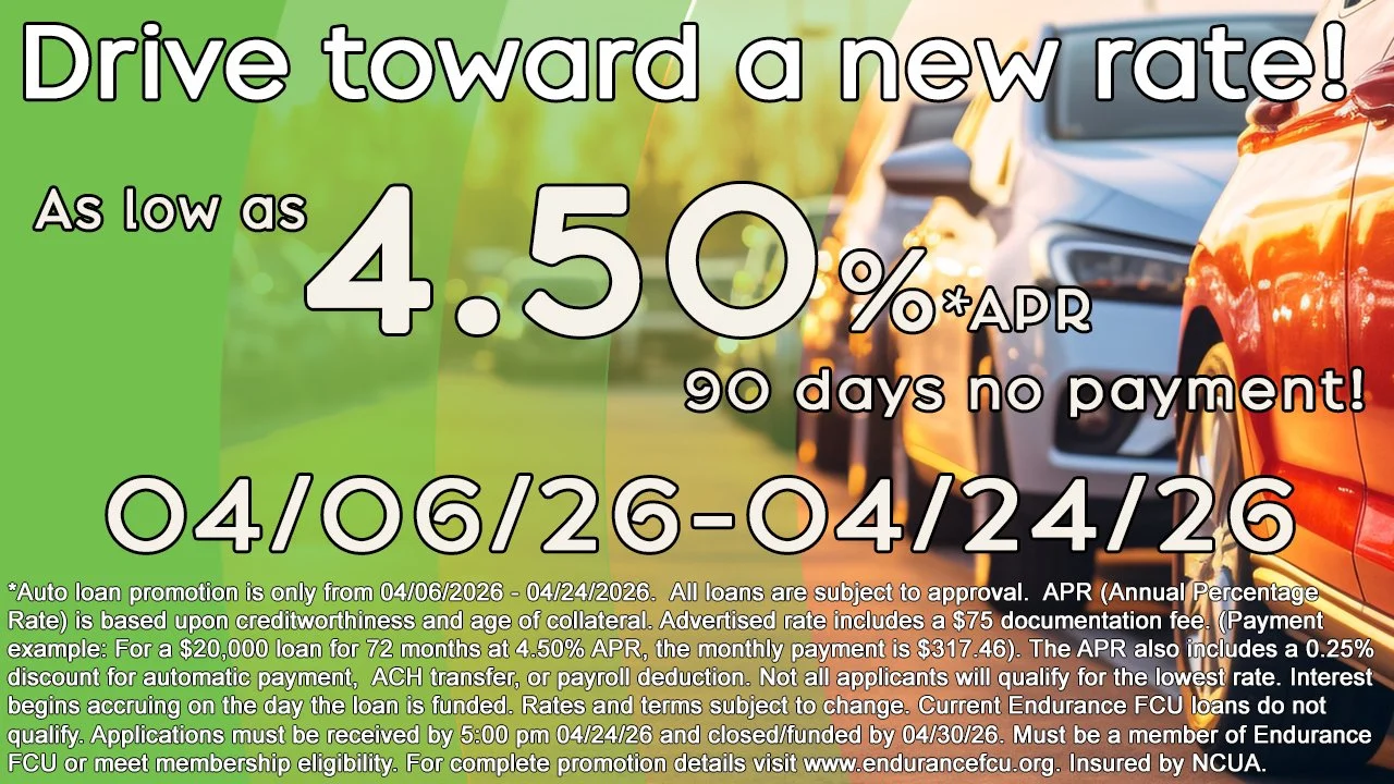 Endurance FCU offers a VISA® Classic and a VISA® Platinum credit card. The VISA® Classic card offers a low fixed interest rate of 12.95% APR* along with travel discounts, travel dividends, auto renters insurance and much more. The VISA® Platinum credit card has a minimum credit limit of $5,000 and has a variable interest rate of 1% above prime. Additional benefits of the VISA® Platinum card include travel accident insurance, auto rental insurance, earning Score Card bonus points on every purchase, plus much more.